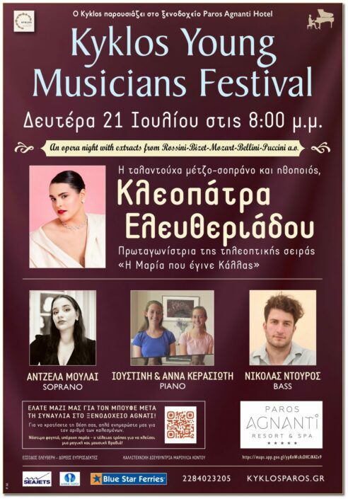 Η δεύτερη εκδήλωση, «Βραδιά Όπερας», πραγματοποιήθηκε στις 21 Ιουλίου 2025, στο ξενοδοχείο Paros Agnanti στον Κριό. Το κοινό απόλαυσε άριες και ντουέτα των Rossini, Bizet, Mozart, Bellini, Puccini και άλλων, ερμηνευμένα από μια ομάδα εξαιρετικών νέων καλλιτεχνών: